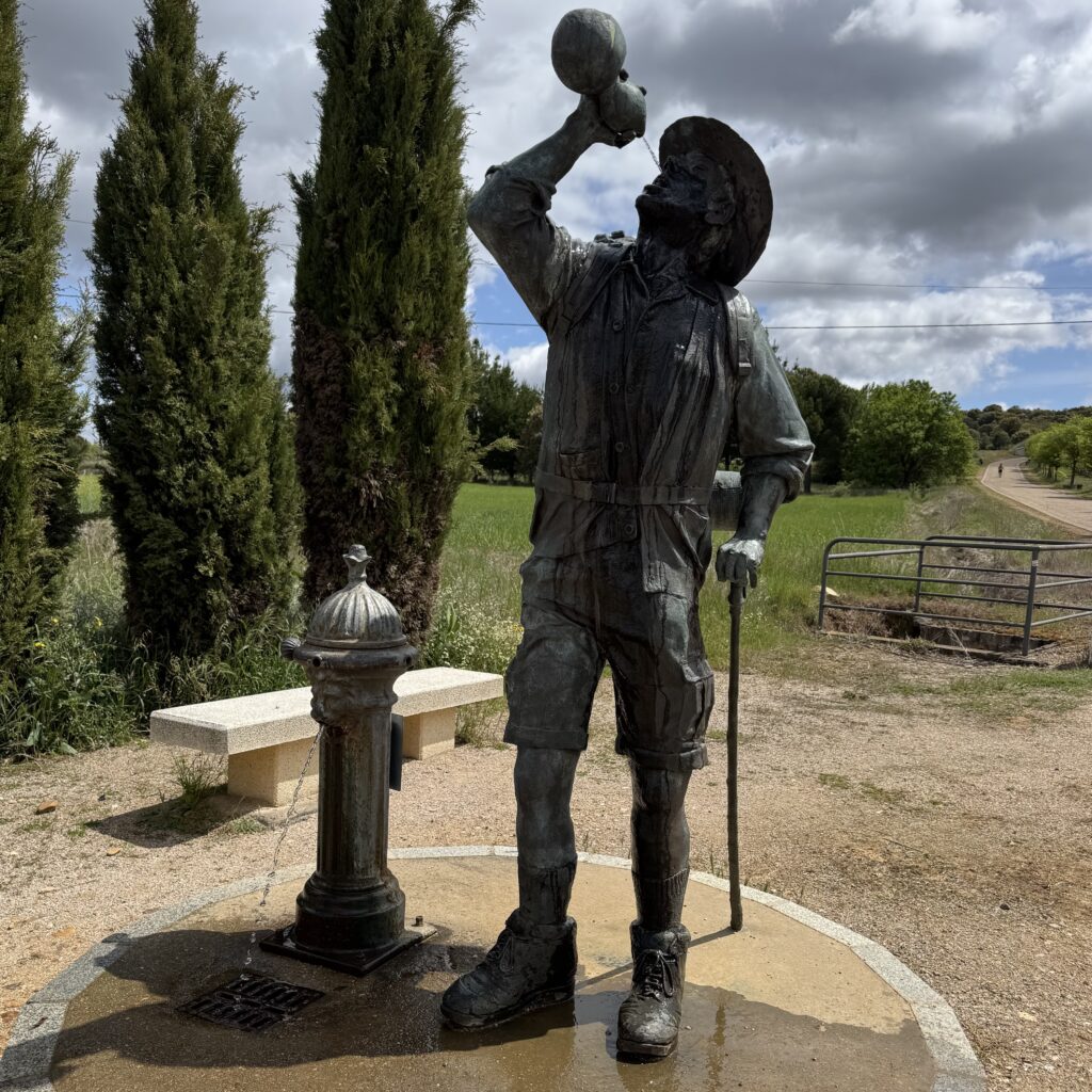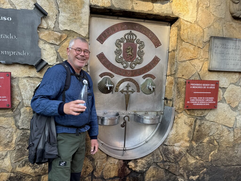 Men så kom vi forbi Bodega Irache, som havde været så forudseende at sætte en ‘vandpost’ op til de tørstige pilgrimme – men med to tappehaner. En med friskt koldt kildevand, og en ’fuente del vino’, med lokal rødvin – og det er ganske vidst.
