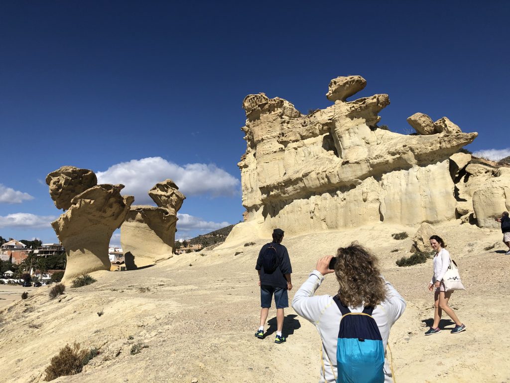 Men ikke alle kommer her bare for at dyrke vandsport eller slappe af i de smukke omgivelser. Et par kilometer vest for Bolnuevo langs Av. del Castellar, er den store turistattraktion Las Gredas de Bolnuevo, et mærkeligt udhulet område. Vind og vand har formet det hvide, lerede sand til noget, der er mest sammenligneligt med en skov af kæmpe svampe. Lejren indeholder mikrofossiler, der blev dannet for 4,5 millioner år siden. Det er en næsten mystisk atmosfære, der omgiver dette mærkelige landskab, der ikke ligner noget, vi har set før.