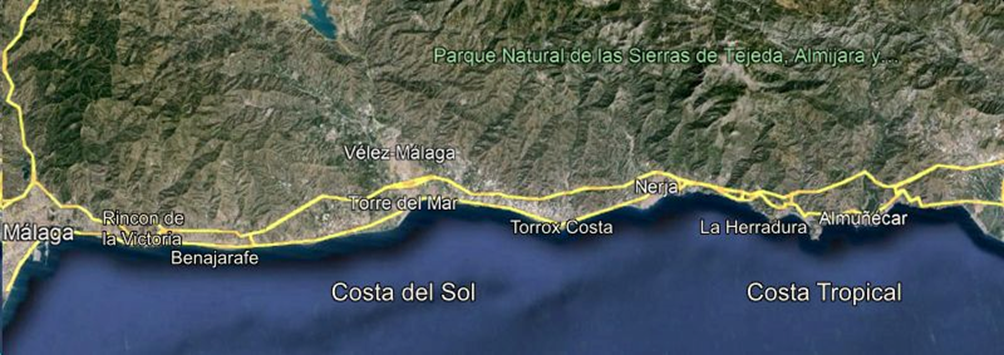Der er smukke strande, høje bjerge og muligheden for at stå på ski i Sierra Nevada om formiddagen og ligge på stranden om eftermiddagen. I det bjergrige bagland ligger de dejligste små hvide landsbyer, og der dyrkes vin på bjergsiderne. Bodegaerne kan besøges med prøvesmagning af de lækre vine. Langs kysten dyrkes også mango på bjergsiderne. Et eldorado for spændende udflugter.