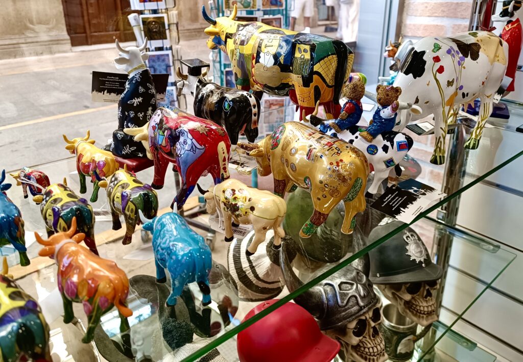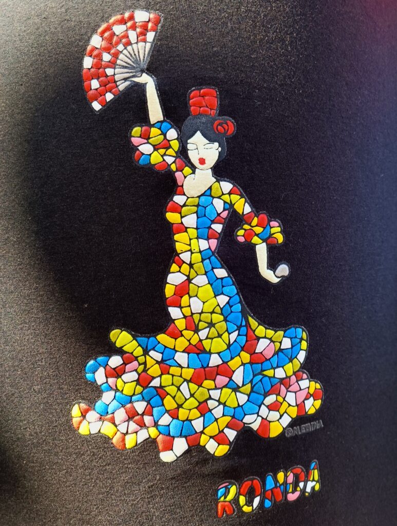 En morgen besøgte jeg et dusin souvenirbutikker, som vi nu har i byen for at tjekke, om jeg kunne finde noget originalt som er fremstillet i Spanien. Desværre handler det næsten kun om kædebutikker, og disse har præcis de samme masseproducerede varer, som man finder i lignende butikker i Granada, Sevilla og Barcelona. Kun bynavnet på koppen med tyrefægteren eller T-shirten med flamencodanseren ændres.