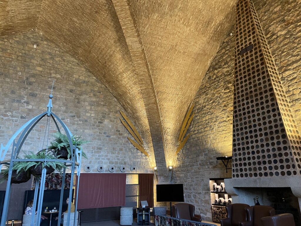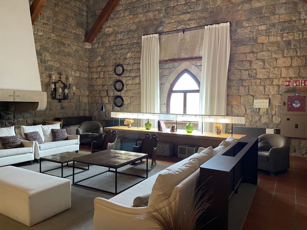Paradorens bar ligger i et meget smukt rum med et højt hvælvet loft, og her fik jeg til min store overraskelse en lækker flødeskumskage. Det var stort, for den slags herligheder er bare en sjældenhed.