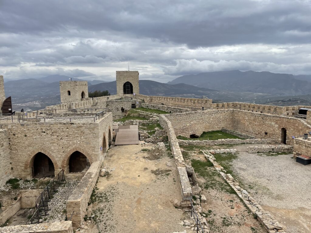 Vi starter med at besøge museet, som ligger henne for enden af klippen og rummer den mauriske borg – eller det, der er tilbage af den. Det er nu ikke så lidt, der er tilbage, så for de 3,5 € som besøget koster, får man et fint indtryk af den oprindelige borg. Midt i borgen ligger en fordybning, hvorunder vandreservoiret og fangehullet lå. Rundt om er den brede forsvarsmur bygget, og man kan gå hele vejen rundt på muren. I den ene ende ligger et tårn med udsigt mod syd og i den anden ende ligger la torre de homenaje – hæderstårnet – det højeste tårn. Det er ganske uden vinduer og jeg undrer mig over, hvor beboerne boede. Det har nok ikke været i vildt hyggelige og varme rum, man boede, men det måtte man jo tage med.