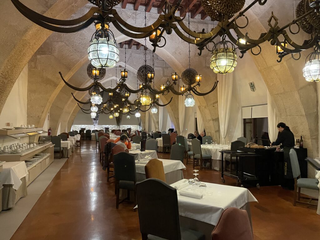 Paradorer er desværre ikke kendt for at være de store kulinariske mekkaer, men her var maden betydeligt bedre end på andre paradorer. Vi tænker, at det nok skyldes, at der kommer mange internationale gæster, som efterspørger lækker, veltillavet mad. Vi mødte både franske, amerikanske og italienske gæster, så denne parador har utvivlsomt et godt ry. Et dobbeltværelse koster, alt afhængigt af sæsonen, mellem 150 og 200 €.