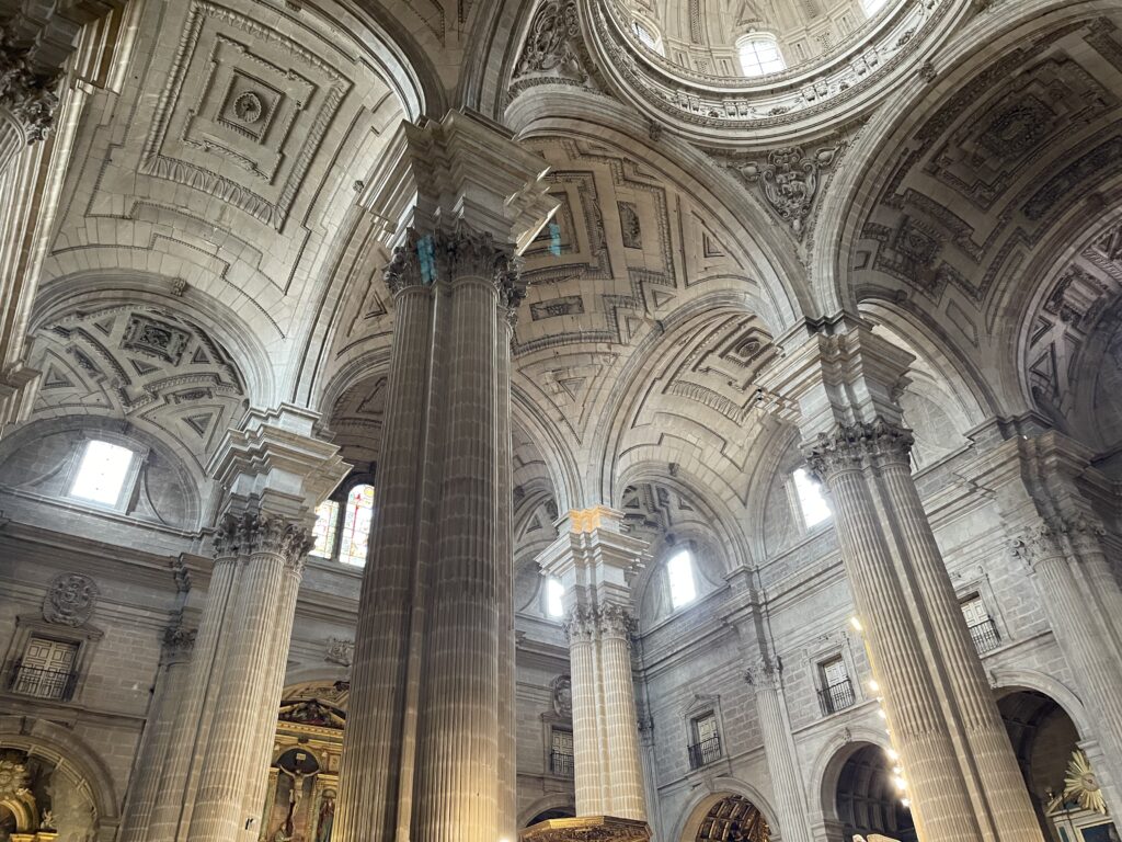 Det var lige efter Jaéns erobring af de kristne i 1246, at Córdobas biskop kom til Jaén for at indvie den tidligere arabiske moské til en kristen kirke. I over 100 år gik de kristne i kirke i maurernes moske, og det var først i 1368 at moskéen blev revet ned til grunden for at give plads til en kristen katedral, som først stod færdig i 1660. Det tog altså små 300 år at bygge katedralen, og når der gik så lang tid, var det hovedsageligt pga. pengemangel, nøl, sjusk og korruption. I dag er Jaéns katedral Spaniens bedste og flotteste eksempel på en basilika i renæssance stil, og flot er den indeni med sine høje hvælvinger, basunengle, bladguld, marmor, himmelstræbende søjler, træskærerornamenter og smukke lysindfald. En billet koster 7 €.
