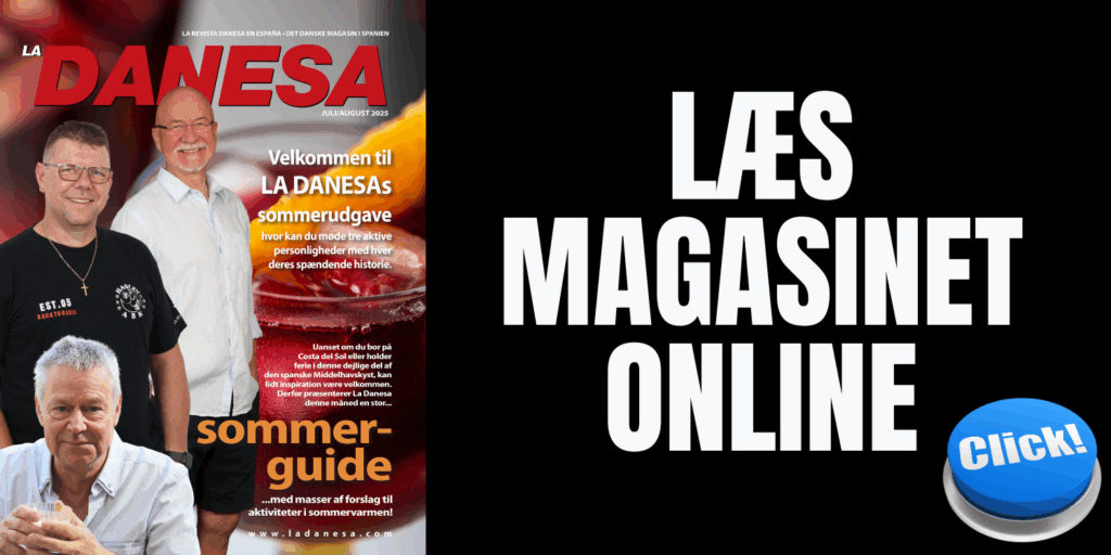 Magasinet du holder i hånden er La Danesas sommerudgave. I lighed med tidligere år, har vi slået juli og august sammen i én udgave og redaktionen tager sig et velfortjent pusterum. Er du abonnent på DanesaPlus+ vil du fortsat nyde godt af daglige nyheder og spændende artikler fra Solkysten hele sommeren. Det koster kun 5 euro om måneden at holde sig ajour med hvad der sker på kysten, så hvis du ikke allerede har gjort det, så skynd dig at tilmelde dig på www.ladanesa.com