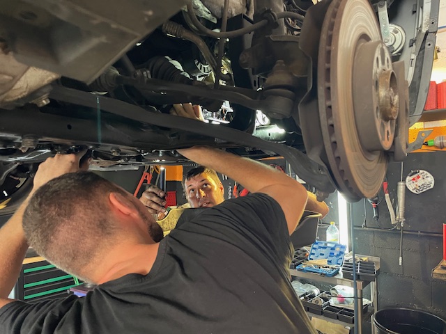 På gulvet i værkstedet tager Thomas Gammelgaard og hendes onkel Ezequiel Campos sig af det tekniske. De reparerer, udskifter og servicerer.