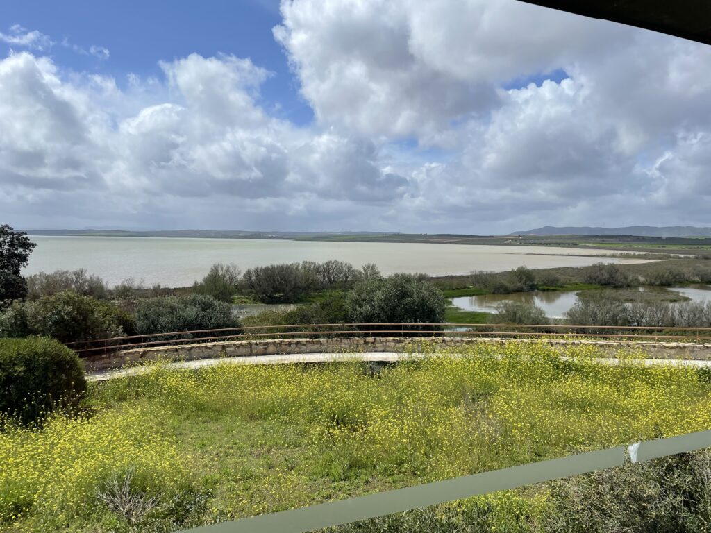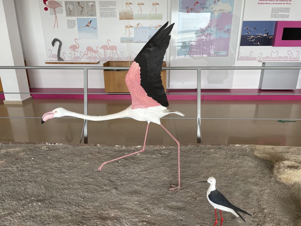 Således opmuntrede kører vi nu de 6 kilometer hen til den kendte sø Laguna de Fuente Piedra, som især er kendt for sin store bestand af flamingoer. Denne gang var søen propfuld med vand pga. den megen nedbør vi har fået i 2025 og det er noget, fuglene kan lide, og der var masser af dem at se på. Der er blevet bygget et fint besøgscenter lige udenfor den lille landsby Laguna de Fuente Piedra og der haster vi nu hen, for centeret lukker kl. 14, men åbner igen kl. 16. Vi når lige at suse igennem centeret, inden vi bliver gennet ud igen, for personalet skal jo hjem og spise og klokken er 14. Lidt slukørede sætter vi os til at spise vores madpakker på nogle store sten foran centeret. Vi har madpakker med, for ellers skal vi bruge alt for lang tid på at finde en restaurant og bestille mad.
