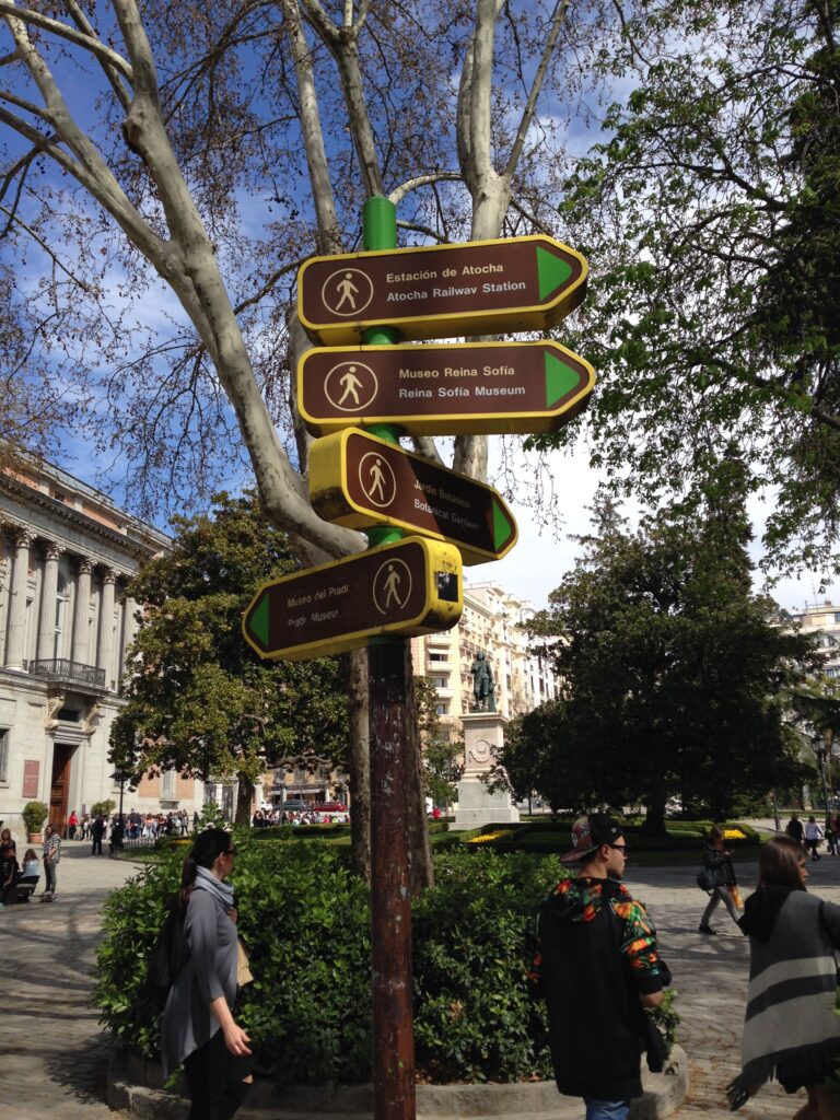 Vi starter vores byvandring fra Estación de Atocha ved at gå over Paseo del Prado, hvor vi, ikke overraskende, finder Prado-museet. Allerede en time før dørene åbner, er der lange køer ude foran, men siden vi skal ’se’ Madrid på én dag, har vi bestemt os for at sætte det, som skal være et af verdens mest besøgte museer, på hold indtil næste gang, vi kommer til Madrid.