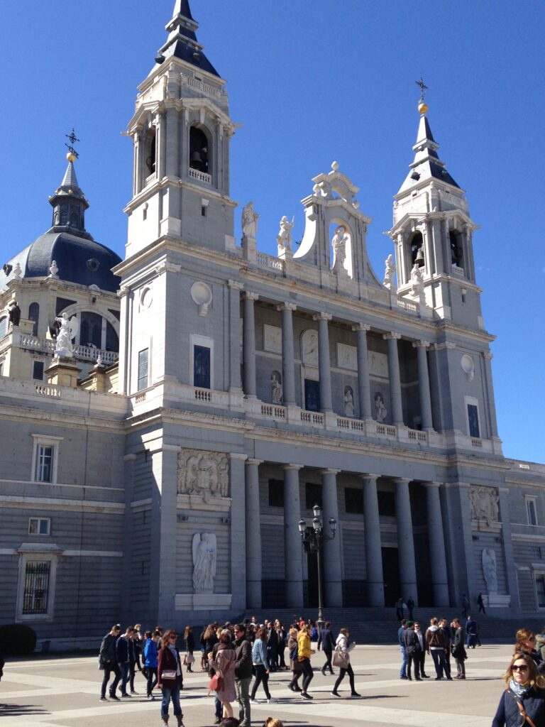 Fra Plaza Mayor er der kun 5 – 10 minutter at gå til den smukke Catedral de la Almudena. Tegningerne til katedralen blev allerede lavet i 1700-tallet, men kirken blev ikke færdig før i 1993. Her ligger også Castillo Real, kongens slot, men vi bliver fortalt, at kongefamilien praktisk talt aldrig opholder sig på slottet. Et spektakulært vagtskifte finder sted her hver onsdag kl. 11.00 – bortset fra perioden 1. juli – 15. august.