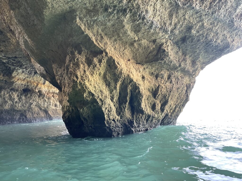 Jeg havde læst om den fortryllende hule Benagil med huller som i en Emmentalerost i kuplen, og den skulle jeg bare se. Heldigvis var byens turistkontor åbent, og jeg forhørte mig, om det var muligt at bese hulen på egen hånd. Det var det aldeles ikke, det var kun muligt på en guidet sejltur, og selv om man selv havde lejet en kajak, var det forbudt at sejle ind i den uden tilladelse. Så nu gik jagten ind for at komme med i sådan en båd, som kun sejler i magsvejr, da det ellers er alt for farligt. I dag var der ingen bådture, for havet var uroligt havde store bølger med hvide toppe.