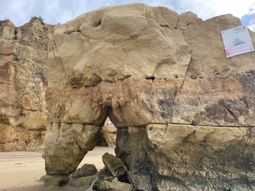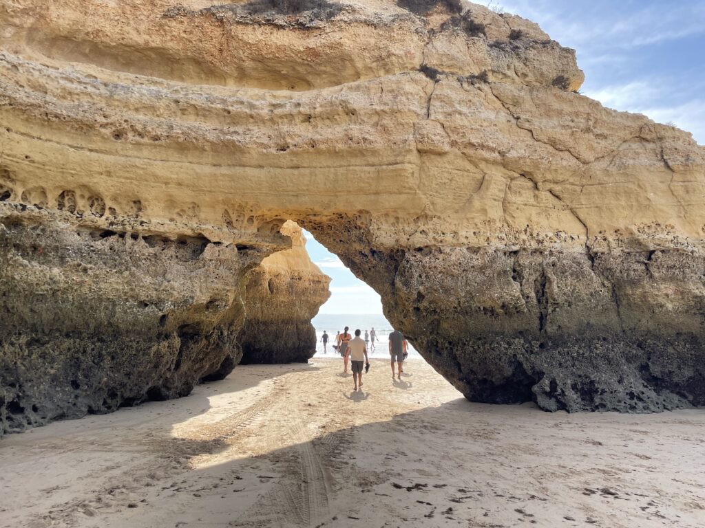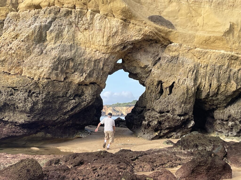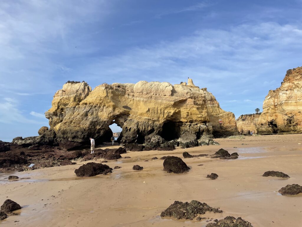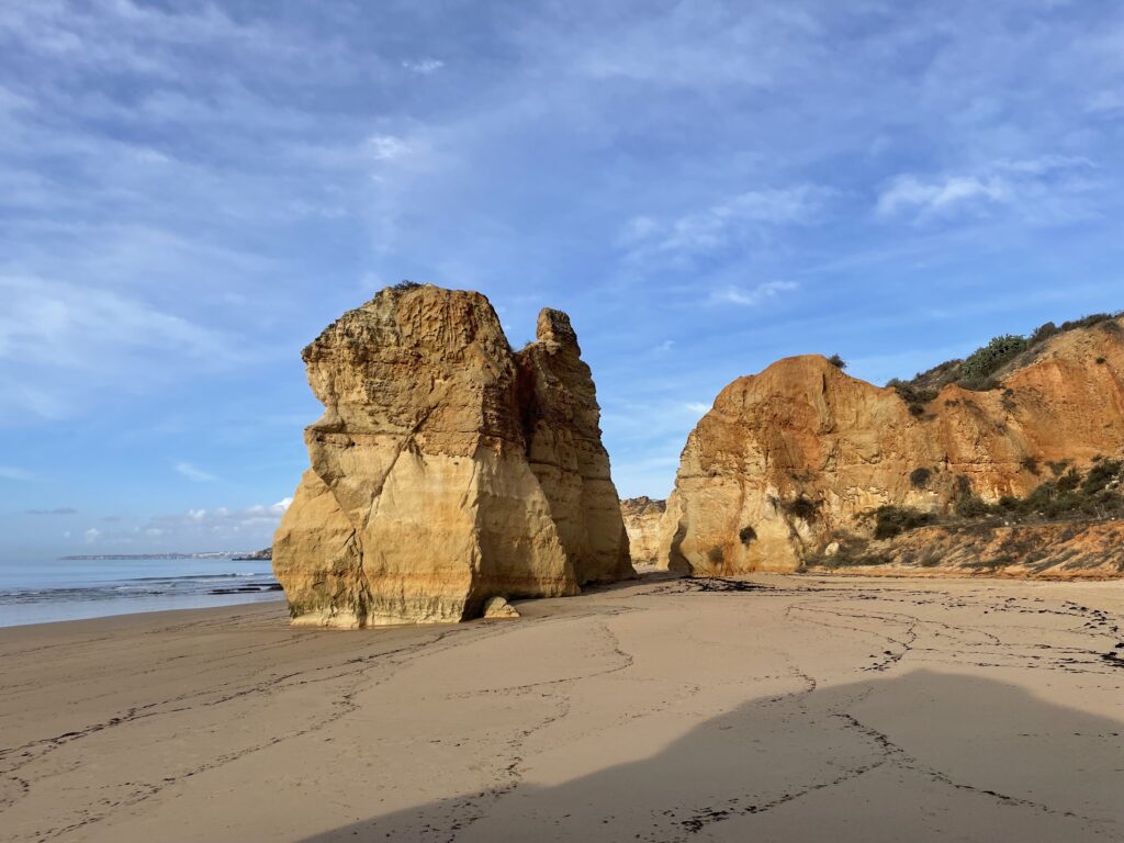 Portimão er den havn, som forsyner de portugisiske øer ude i Atlanterhavet: Madeira, Porto Santo og Azorerne med varer, og hvis man vil sejle til disse øer i stedet for at flyve, skal man tage et skib i Portimão. Men byen er bedst kendt for sin strand syd for byen, som med rette er et trækplaster pga. sine klipper og fine sandstrand. I dag er sandstranden meget bred, men det var den ikke i 60erne, da tilstrømningen af turister begyndte. Ved hjælp af bygning af lange moler ved udmundingen af Arade floden har man fået en bred sandbræmme til at blive liggende, så stranden i dag fremstår meget attraktiv med sine mange flotte klipper og gule sand. Vi gik en tur på stranden og var fulde af beundring.
