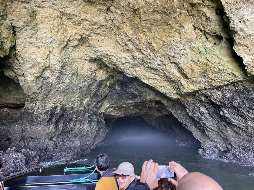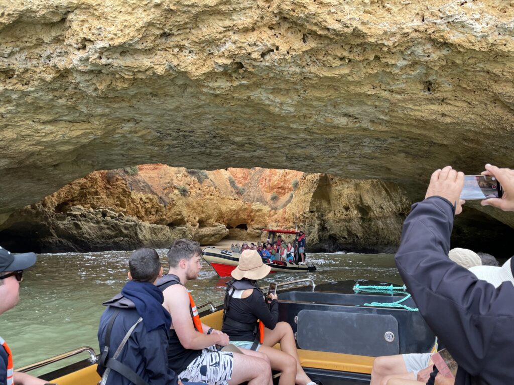 Vi blev så kørt til Portimão og installeret i en stor gummibåd med en 200 cv påhængsmotor sammen med 8-10 andre turister. Om bord stod vores guide samt kaptajnen – begge søde unge mænd med mod på livet.