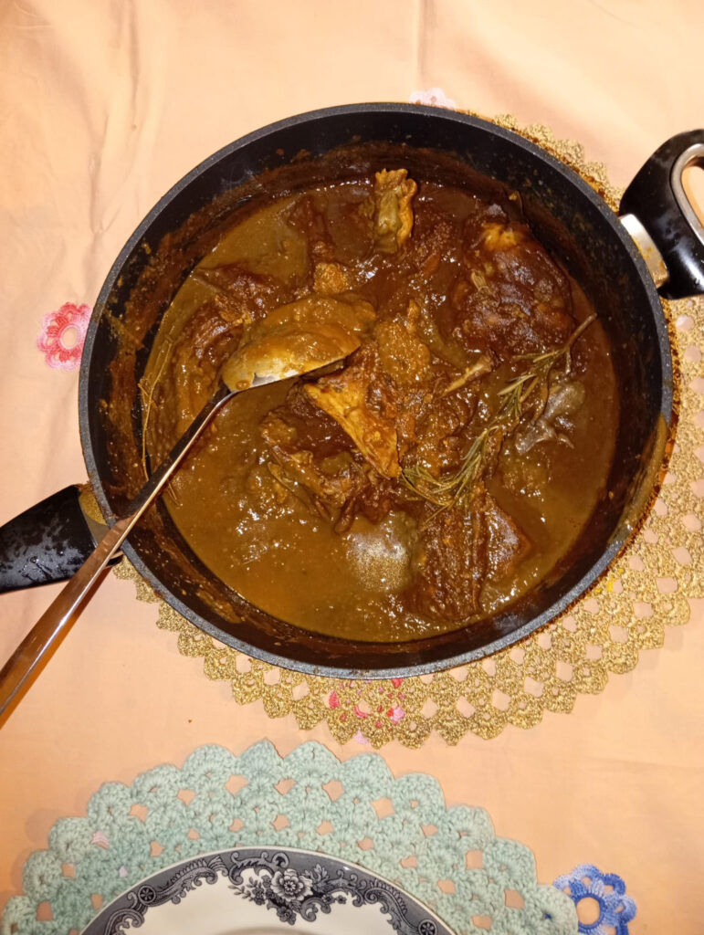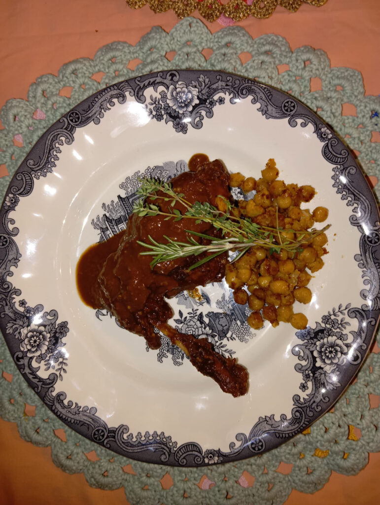-Til denne lejlighed serverede jeg gryderetten med nogle ristede kikærter, men den kan også serveres med sød kartoffelpuré eller ristede skovsvampe.