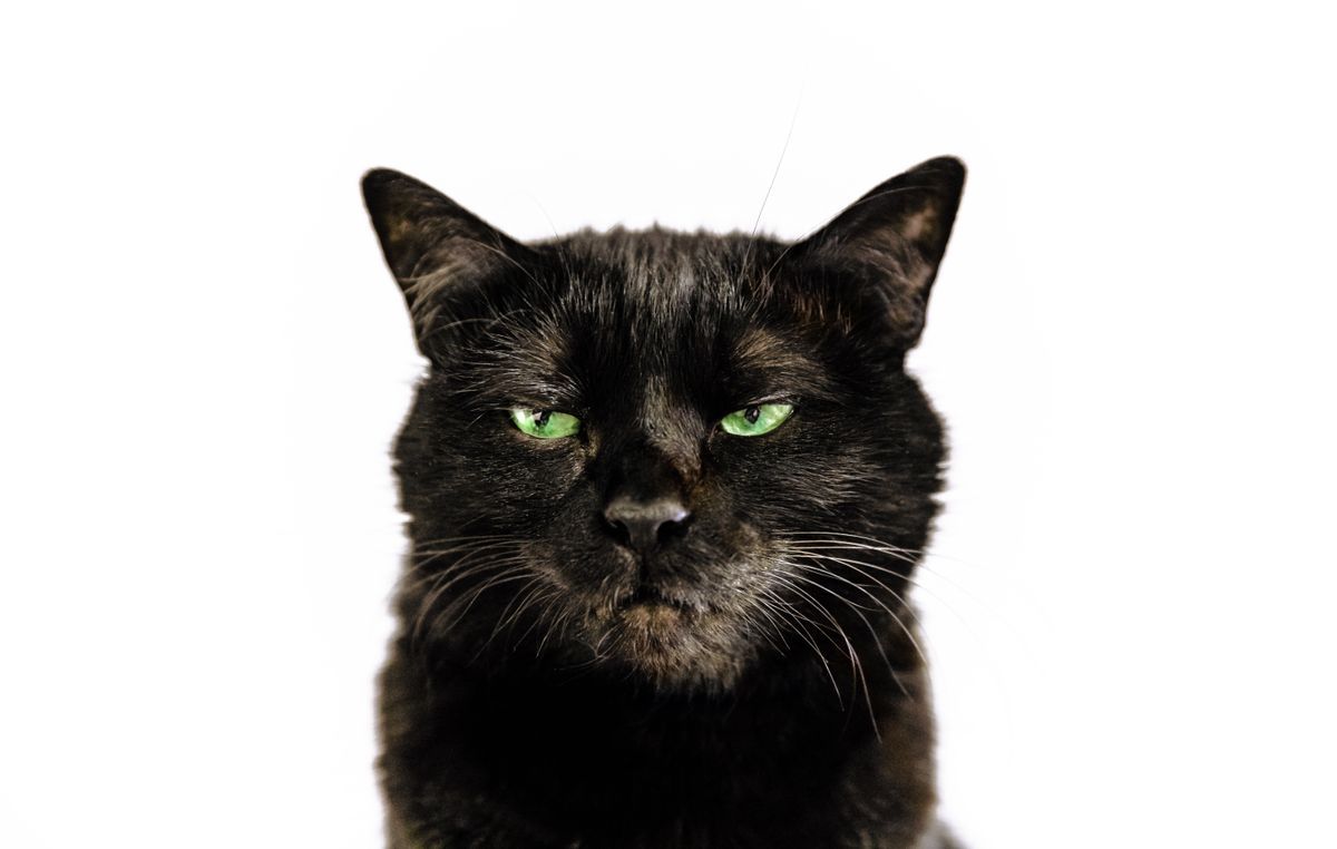 Dette er klassisk overtro, der har eksisteret i generationer. I modsætning til egyptisk kultur gav katolsk kultur den sorte kat en negativ symbolik: sort repræsenterer natten, hvilket igen svarer til mørke, ondskab, djævelen og hekse. Hvis din vej krydses af en sort kat, skal du være forsigtig, men hvis den sorte kat kommer gående mod dig, betyder det, at du tilsmiles held og visdom. Hvis en sort kat krydser din vej, uanset om katten kommer fra højre eller venstre, betyder det, at der sker noget dårligt og ulykkeligt. I modsætning til dansk overtro er det muligt at afværge uheld ved at spytte tre gange over skulderen, efter at katten er gået.