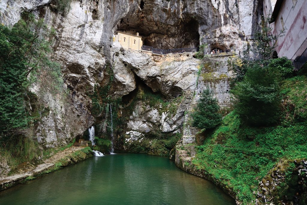 Nu ærer man ikke udelukkende Jomfru Maria, men også Pelayo, der efter sin død i 737 skulle blive begravet i kapellet, Santuario de Covadonga, der ses på billedet.