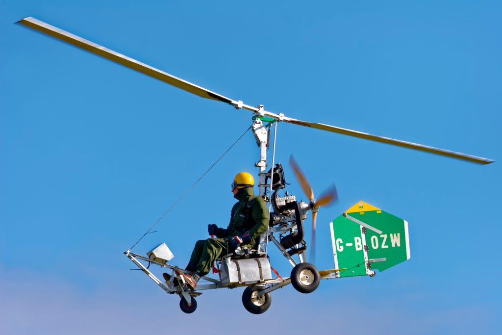 Gyrocopter. Det lille luftfartøj bæres oppe af en vinddrevet rotor, der roterer om en næsten vertikal akse. Den blev opfundet af civilingeniør Juan de la Cierva fra Murcia i 1923. Den blev først anvendt af det spanske forsvar og blev stamfader til helikopteren. Selv havde han ikke den store fidus til sin opfindelse, da han mente, det var et risikabelt fartøj at begive sig rundt i.