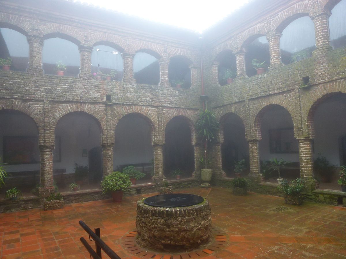 Det blev naturligvis udlagt som et mirakel, og Pelay Pérez Correa lod opføre en lille ermita på bjergryggen, hvor slaget fandt sted. Med tiden opstod klosteret, idet der blev føjet nye bygninger til over de næste århundreder. Klosteret kom til at hedde Tentudía, idet man lige forkortede råbet lidt. Det ligger der den dag i dag, og nu skal vi besøge stedet og beundre udsigten fra dette højdedrag. Troede vi. Men ak – da vi kom frem ved 13 tiden var bjergryggen indhyllet i en tæt tåge. Da vi endelig kom derop, kunne vi dårligt nok skimte klosteret igennem den tætte sky, som hele toppen lå inde i. Øv! Vi var bange for, om klosteret overhovedet var åbent sådan en kold og klam januardag, men jo, de overholdt deres åbningstid som er fra 11-18 om sommeren og 10-17 om vinteren. Der stod en enlig frysende herre/ kustode inde på et kontor og han indkasserede den ene euro, som vi hver skulle af med for at komme ind.