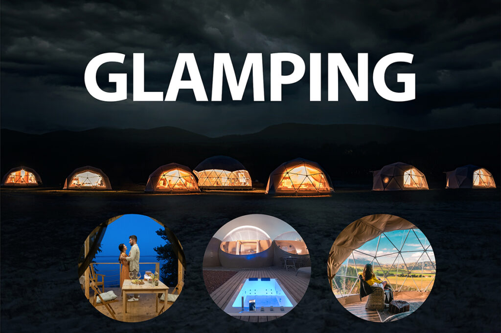 Efteråret er til glamping. Glamping (glamorøs camping) er sagen, hvis du vil nyde en naturferie med samme komfort som på et hotel og charmen ved traditionel camping, uden at skulle tænke på lommelygte, myggeolie, sovepose eller glemte teltpløkker. Som ‘glamper’ behøver du ingen teknisk viden, du møder bare op. Det er derfor den perfekte løsning for dem af os, der kan lide tanken om at bo i et telt, uden egentlig at skulle gøre det. Glamping i Spanien er måske ikke for de der vender enhver skilling. Glamour og eksklusivitet i det fri kan koste – i vores eksempler mellem €89 og €990 euro, selvom det i sidstnævnte tilfælde inkluderer alle måltider tilberedt af en Michelin-kok og adgang til et spa i verdensklasse. I månedens magasin bringer vi dig en håndfuld spændende glampingforslag.