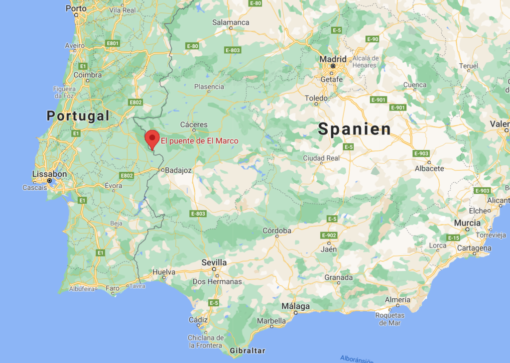 Hvis vi ser på den anden side af skalaen, på verdens korteste bro mellem to nationer, behøver vi ikke rejse til andre kontinenter eller lande. Faktisk tager det ikke mere end en kort køretur på kun 5 timer fra Málaga, så du kan endda stå midt på broen. Verdens korteste internationale bro går mellem Spanien og Portugal – det er El Marco-broen og den er 3,2 meter lang og 1,45 meter bred.